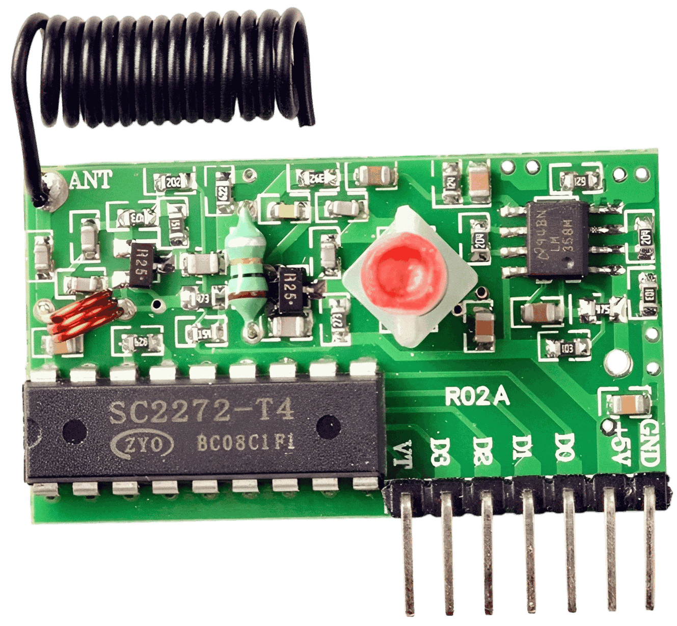El módulo receptor RF basado en el PT2272 Remote Control Decoder IC es un circuito integrado diseñado para recibir y decodificar señales provenientes de transmisores RF compatibles. Este tipo de módulo se utiliza ampliamente en sistemas de control remoto inalámbrico, como interruptores remotos, alarmas, automatización del hogar y proyectos electrónicos con radiofrecuencia.
