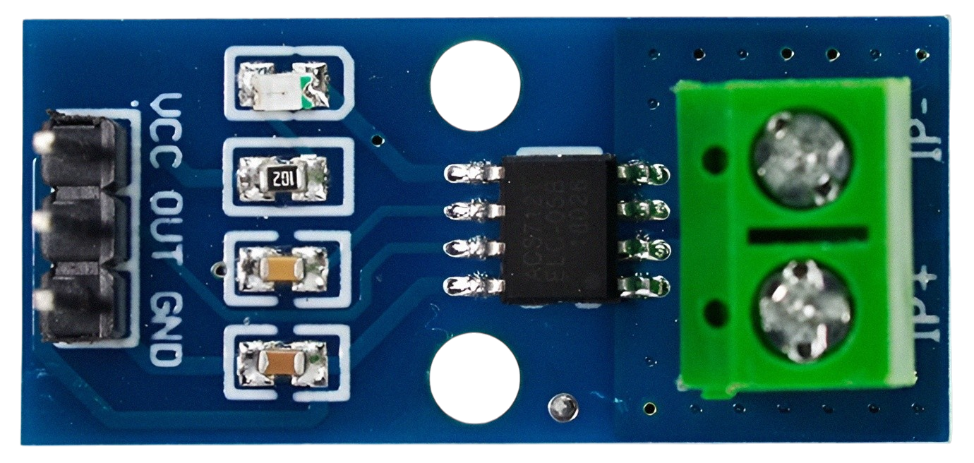 Funciona con 5V y entrega una señal analógica centrada en 2.5V cuando la corriente es cero, variando según la corriente medida. Es ampliamente utilizado en proyectos de Arduino, ESP32 y sistemas de medición de consumo.