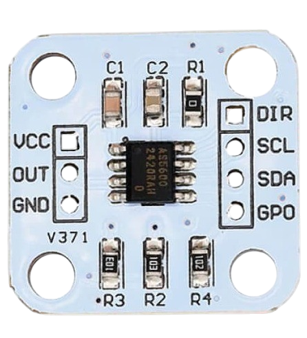 Este módulo detecta la posición mediante un imán colocado sobre el eje, evitando el desgaste físico y aumentando la vida útil del sistema. Ofrece dos tipos de salida: comunicación I2C para lectura digital directa y PWM para una integración sencilla con microcontroladores.