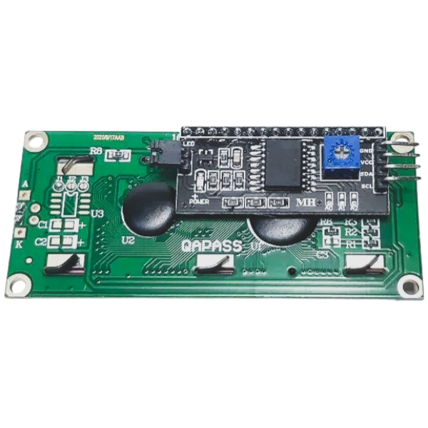 Incluye un módulo I2C PCF8574, que permite controlar el display usando solo dos líneas de comunicación (SDA y SCL), reduciendo significativamente la cantidad de pines necesarios en comparación con la conexión paralela tradicional. Esto facilita la integración con placas como Arduino, ESP32, ESP8266, Raspberry Pi, entre otras.
