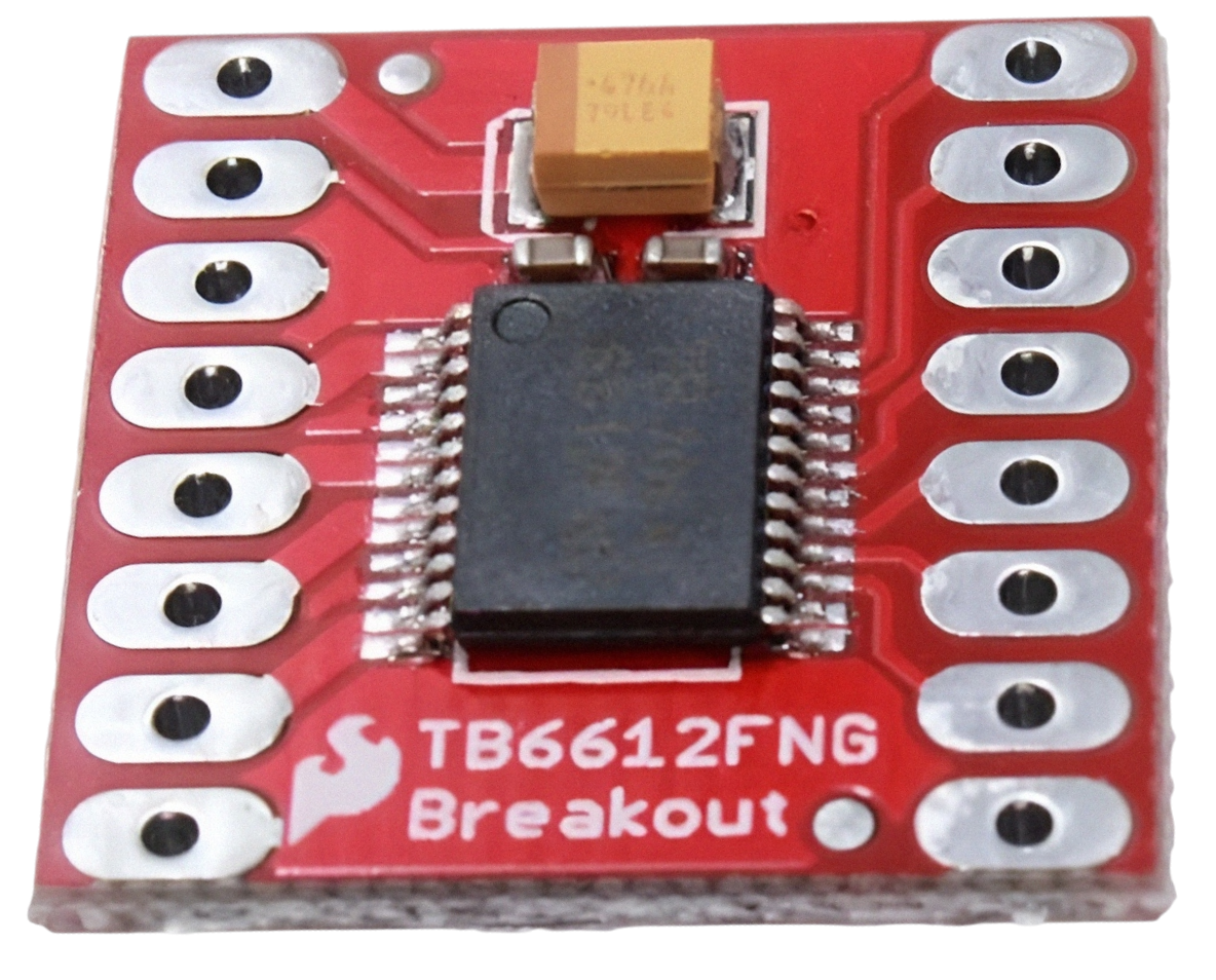 El TB6612FNG-PCB es un driver de motores de doble canal que permite controlar dos motores DC de forma independiente o un motor paso a paso bipolar. Es una excelente alternativa a drivers más antiguos, ofreciendo mayor eficiencia, menor calentamiento y mejor control por PWM.